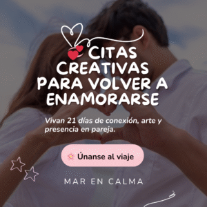 En Mar en Calma desarrollamos un método único que integra el poder del arte y la meditación para acompañarte a recuperar tu equilibrio natural. A través de este proceso creativo y espiritual, podrás fortalecer tu autoestima, ganar confianza, expandir tu visión, liberar el sufrimiento y reconectar con tu verdadera esencia. Cada sesión es un espacio profundo de transformación, diseñado para que vivas avances reales y duraderos.